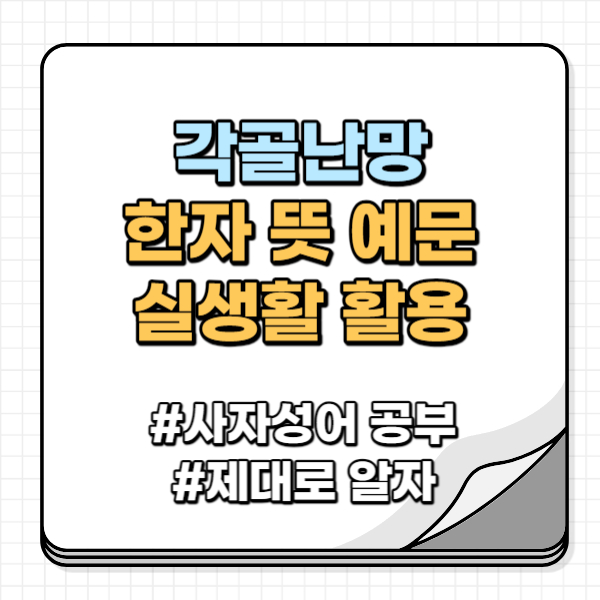 각골난망이란 말은 은혜에 관한 사자성어인데요. 결초보은과 결이 비슷한 말로 평소에도 자주 보이는 사자성어 중 하나입니다. 알아두면 분명 쓰임새가 높은 사자성어이기 때문에 오늘 정확한 뜻과 실생활 예문까지 꼭 알아가시기 바랍니다.