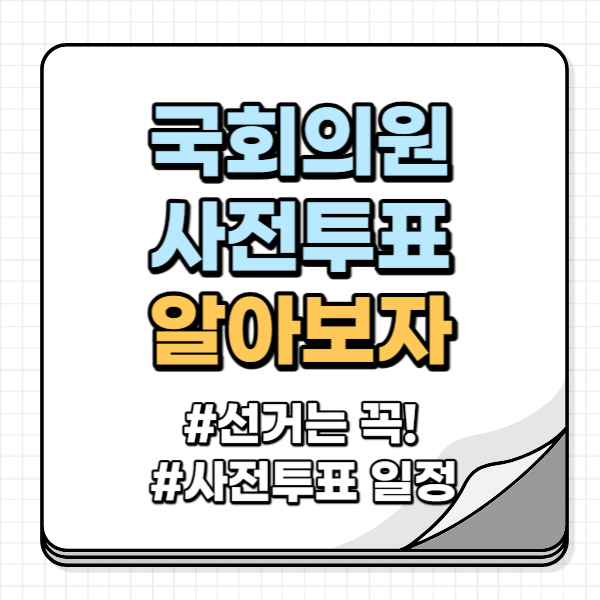 제22대 국회의원 선거가 다가오고 있습니다. 연일 여론조사 전화를 받느라 고생이신 분들이 많을 텐데요. 올해 국회의원 선거는 4월 10일에 진행이 됩니다. 그런데 이날 투표를 하지 못하는 분들이 있을 수 있는데요. 그런 분들은 사전투표를 하면 해결이 됩니다.