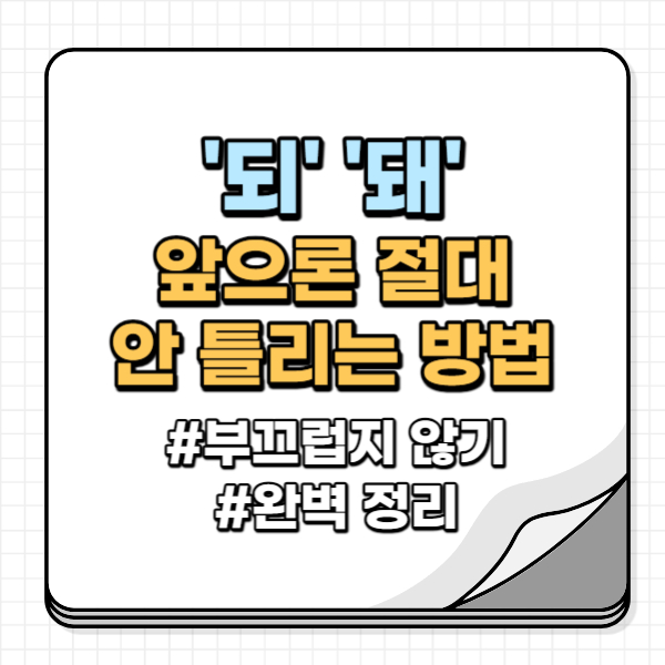 돼 돼 맞춤법 항상 헷갈리진 않으셨나요? 잘 모르는 사람들과 대화할 때 특히나 더 신경 쓰이는 것이 바로 맞춤법인데요. 되와 돼는 그중에서도 너무 헷갈리고 틀리게 사용하는 경우도 많은 대표적인 케이스입니다. 그래서 오늘 이 두 가지를 아주 쉽게 기억하고 실수하지 않도록 제가 설명드리겠습니다.