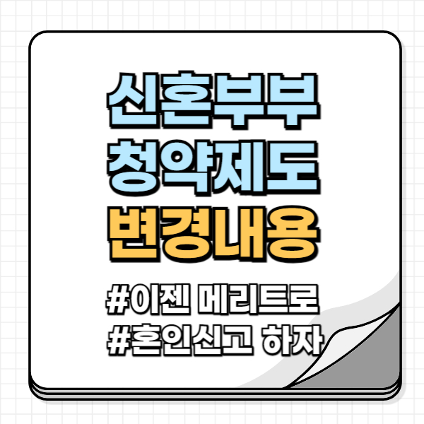 이번에 신혼부부에 대한 청약 내용이 변경되면서 이제는 결혼으로 인해 페널티를 받던 내용들이 사라지게 되었습니다. 아마 청약 때문에 혼인신고를 미루는 분들도 많았을 거라 생각이 드는데요. 오늘 내용 꼭 확인하시기 바랍니다.