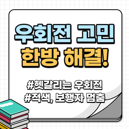 그리고 차량신호가 적색일 경우는 무조건 일단 멈춘 뒤에 우회전 진입을 하셔야 해요. 이 두 가지만 꼭 명심하시면 문제가 되실 일은 없으실 것 같습니다.