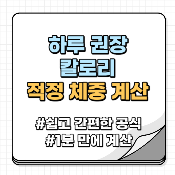 오늘은 이렇게 적정 체중을 구하는 방법과 하루 권장 칼로리를 계산하는 방법에 대해서 알아보았습니다. 정말 복잡하지 않고 쉽게 구할 수 있는데요.