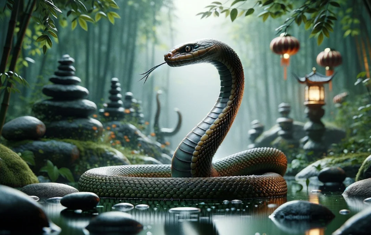 여섯 번째 동물은 뱀입니다. 날카롭고 무서운 생김새를 가지고 있는데요. 뱀의 상징은 바로 지혜와 결단력이라고 합니다.