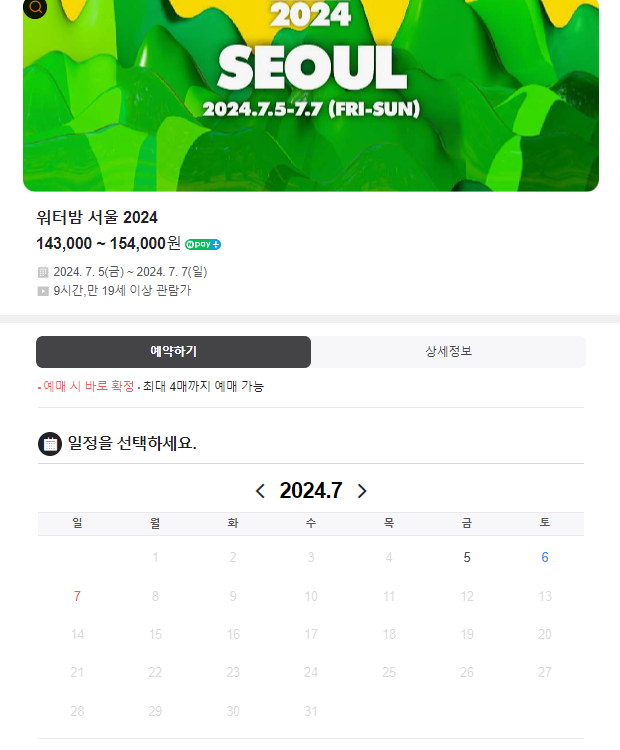 | 서울 | 2024. 7. 5 ~ 7. 7 (금 ~ 일) |